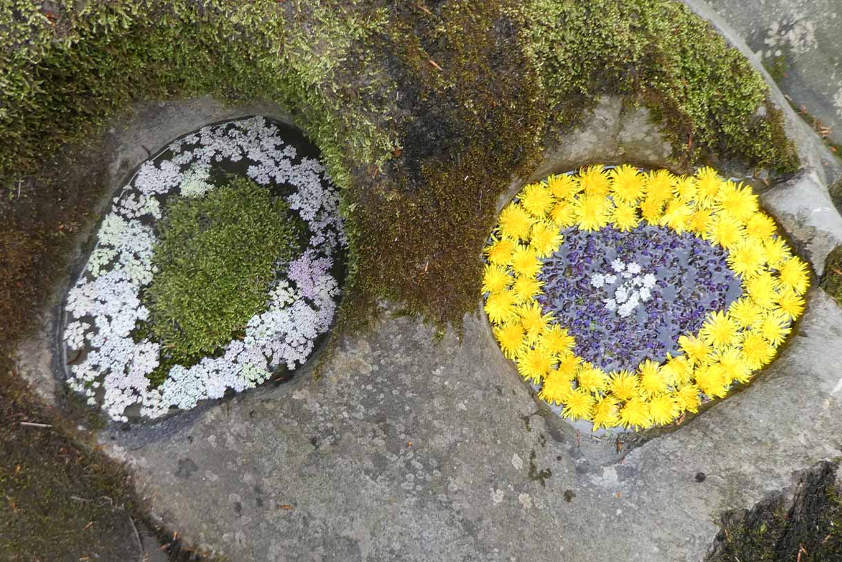 Die Natur ist ein Füllhorn voller Blüten, Steinen, Stöckchen und anderen Dingen, die sich für das Legen von Kunstwerken eignen.
