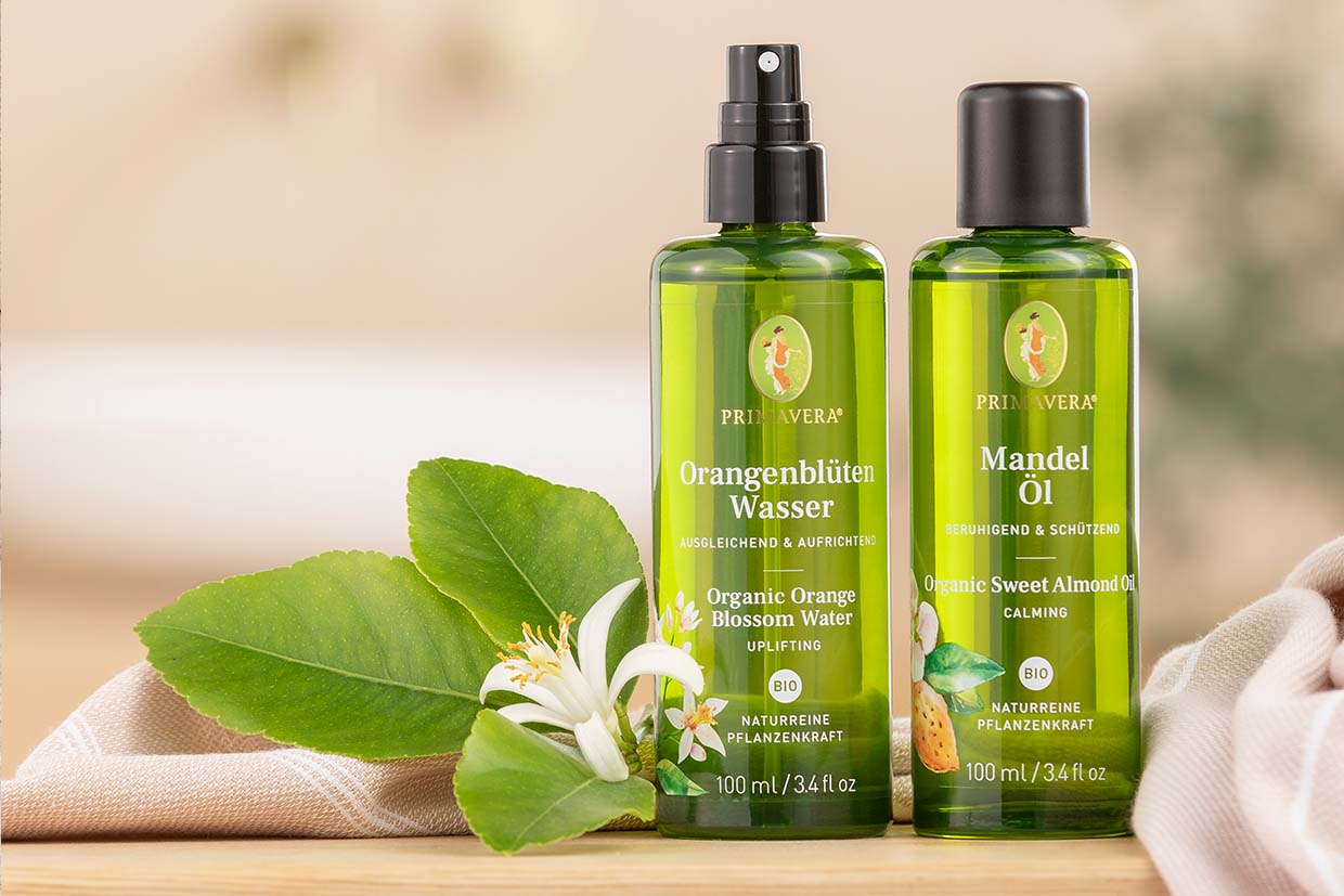 <p>Hautberuhigend und stärkend für Haut, die zu roten Flecken neigt, ist das Duo aus Orangenblütenwasser bio und Mandelöl bio. Einfach ein paar Sprühstöße vom Orangenblütenwasser auf die gereinigte Haut auftragen und das Mandelöl sanft in die Haut massieren.</p>