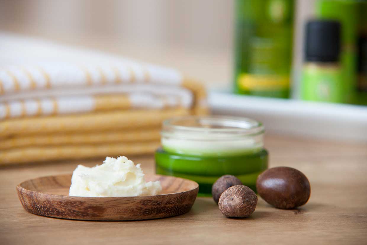 Lippenbalsam mit deinem Lieblingsduft: 25g Sheabutter im Wasserbad schmelzen, 3 bis 5 Tropfen ätherisches Öl hinzugeben & im Kühlschrank erhärten lassen