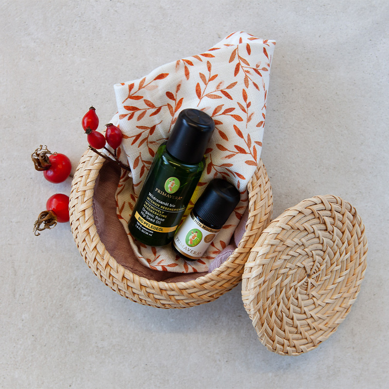 In 30 ml Wildrosenöl 6-8 Tropfen Erste Hilfe Mischung eintropfen. Verschließen.
