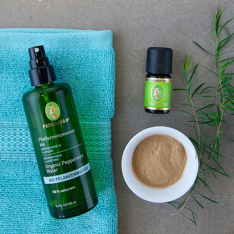 Ätherisches Öl und Pflanzenwasser zur Heilerde geben und vermischen, bis ein sämiger Brei entsteht. Wenn die Masse zu trocken ist, etwas Pflanzenwasser hinzugeben und erneut gut vermischen.