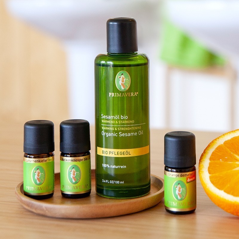 Seit Jahrhunderten gehören Ölziehkuren zur traditionellen indischen Heilkunst, um gesundheitliche Beschwerden zu verbessern und das Immunsystem zu stärken. Sesamöl wird besonders im Ayurveda häufig verwendet, da es in Indien als Geschenk der Erde bezeichnet wird und ihm eine heilende Wirkung zugeschrieben wird. Die ätherischen Öle aus Latschenkiefer, Orange und Nelkenknospe runden die Komposition bezüglich ihres Wirkprofils perfekt ab und verwandeln die DIY Ölziehkur in eine schmackhafte Gesundheits-Routine