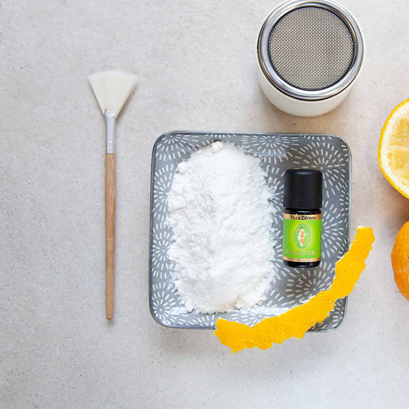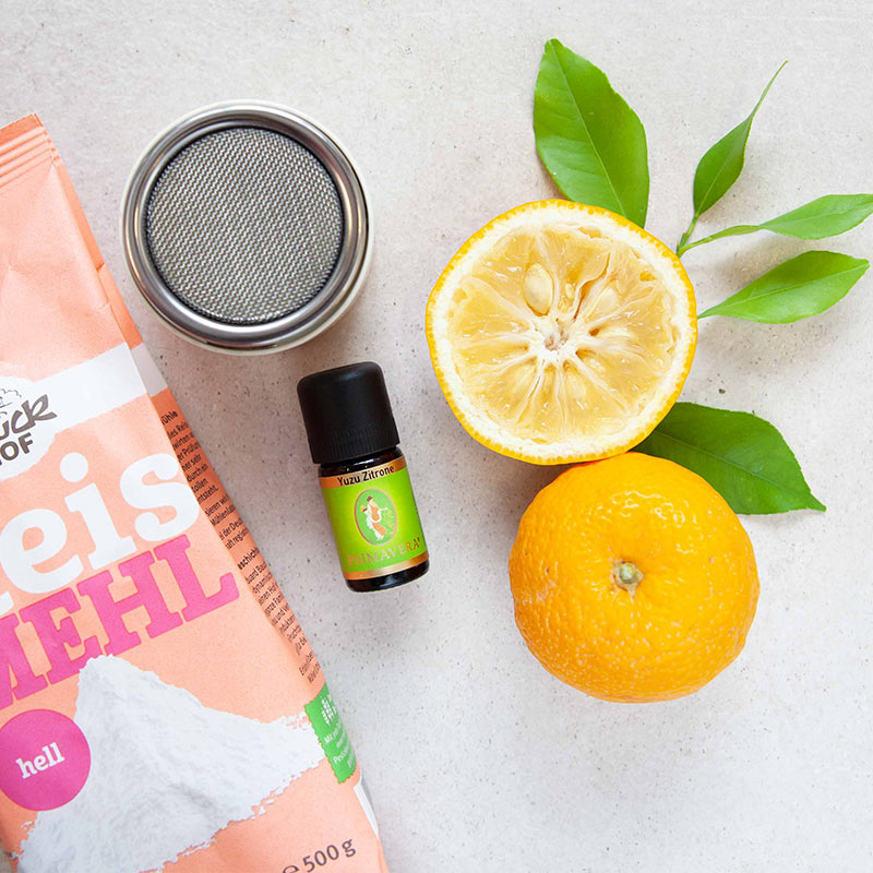 Angenehm pudrig, nach Zitrus duftend, sanft desodorierend. Das DIY Körperpuder ist ein wahrer Allrounder! Es beruhigt die Haut, trocknet schwitzige Haut, verhindert Reibung an besonders sensiblen Stellen wie den Oberarmen oder - schenkeln und lässt sich auch als dezent exotisch duftendes Trockenshampoo einsetzen. Abgefüllt in einem verschließbaren Gefäß kann es einfach z.B. mit einem Pinsel entnommen werden. Der spritzige Duft der Yuzu Zitrone aus Japan hebt die Stimmung, vitalisiert und hilft, Altes loszulassen. Ein perfekter Begleiter für alle kleinen und großen Sommer-Unternehmungen.