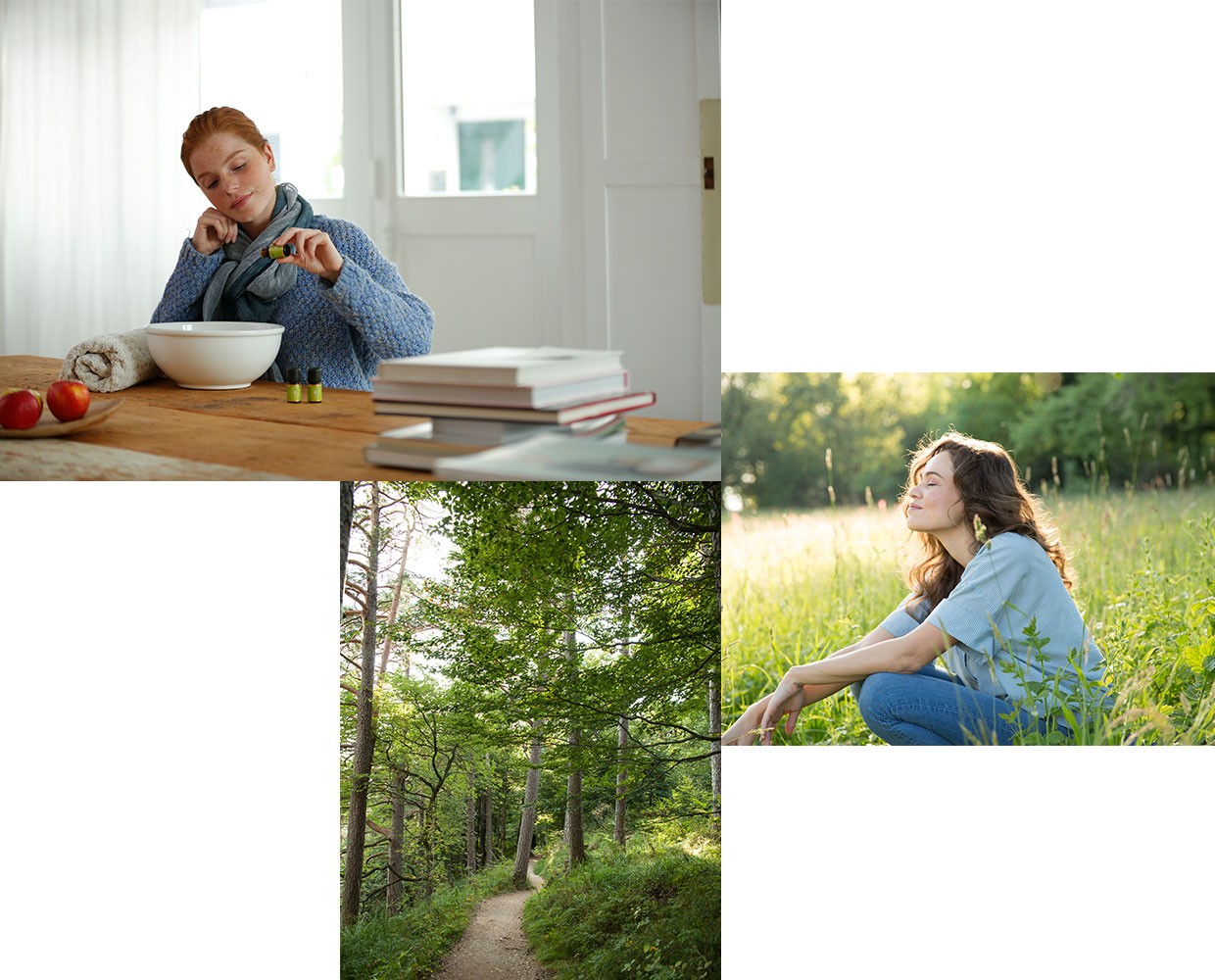 Ätherische Öle in einen leeren Roll-On tropfen und mit Mandelöl auffüllen. In herausfordernden Momenten auf Handgelenk-Innenseite, Schläfen, Nacken und unter der Nase auftragen.