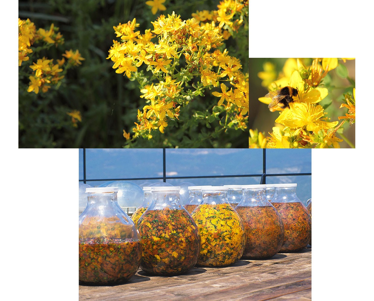 <p>Johanniskraut ist eine ausdauernde Pflanze mit goldgelben Blüten, die an Wegrändern und Rainen gedeiht und bis 1 Meter hoch werden kann. Der botanische Name Hypericum bedeutet „über allem Bösen“. Der Zusatz perforatum bedeutet „durchlöchert“. Es heißt, der Teufel habe die Blätter des Johanniskrautes mit Nadeln durchstoßen, aus Bosheit darüber, wie viel Gutes sie den Menschen bringt. Diese feinen Löcher sind mit bloßem Auge sichtbar. </p> <p>Die gelben Blüten des Johanniskrauts verfärben sich blutrot, wenn sie zerdrückt werden, weshalb auch "Blutkraut" genannt wird. Der hautpflegende Ölauszug (Mazerat), bei dem das Kraut über längere Zeit in ein fettes Pflanzenöl eingelegt wird (z.B. Olivenöl) ist für seine rote Färbung bekannt und wird häufig "Rotöl" genannt. Neben dem Mazerat wird aus Johanniskraut durch Wasserdampfdestillation auch das ätherische Öl gewonnen, das für seine entspannende und stimmungshebende Wirkung geschätzt wird.</p> <p>Johanniskraut wirkt beruhigend auf Haut und Sinne und ist dafür bekannt, Licht und Leichtigkeit in dunkle Zeiten zu bringen. In der Hautpflege wird es für seine beruhigende und lindernde Wirkung bei entzündeter, rissiger und trockener Haut geschätzt. </p> <p> </p>