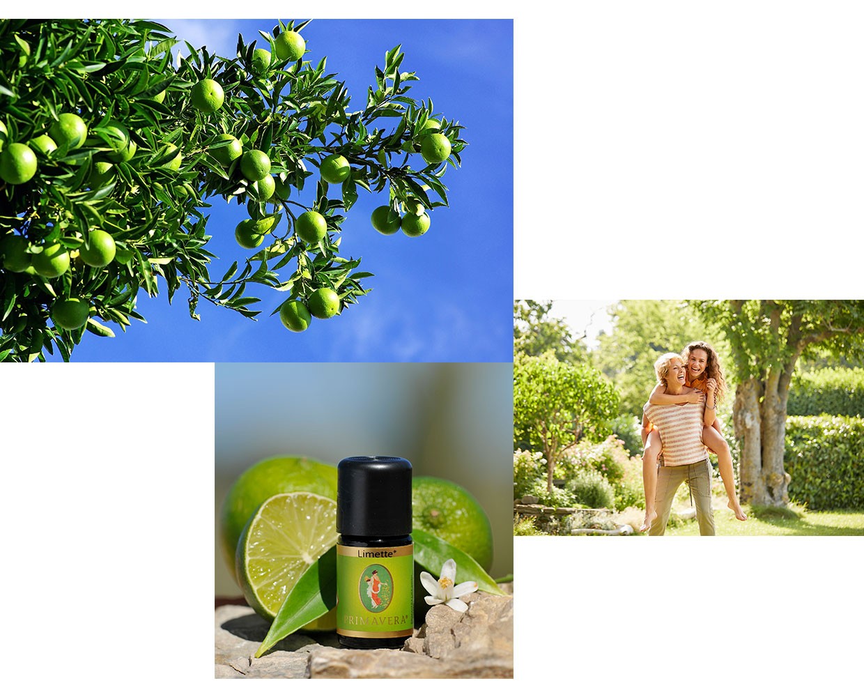 Die Limette ist eine kleine Zitrusfrucht mit grüner Fruchtschale und saurem, aromatischem Fruchtfleisch. Sie stammt aus Südostasien und wird heute in den Tropen, Afrika und Mittelamerika kultiviert. Limettenbäume werden bis zu 5 Meter hoch. <p>Besonders geschätzt sind die Früchte wegen ihres intensiven Aromas in der Küche und der Cocktailbar. Limette ist dank ihrer aktivierenden Eigenschaften auch häufig in vitalisierenden Kosmetikprodukten zu finden. <p>