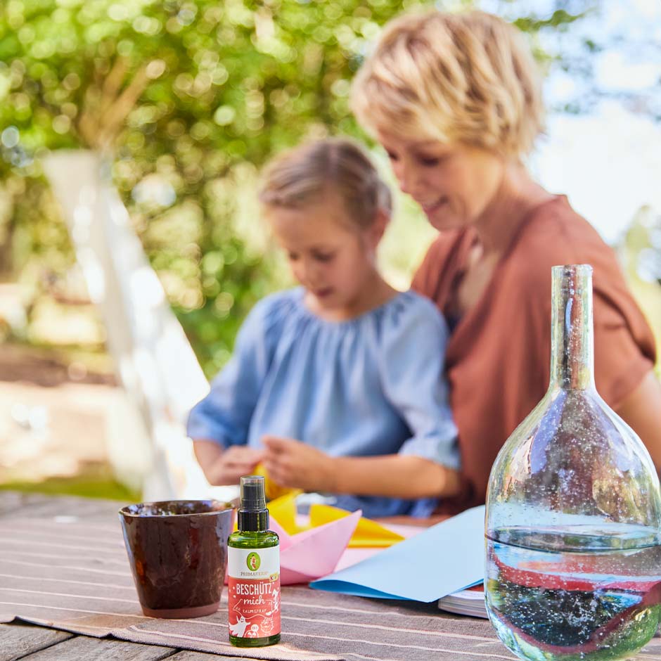 Sind Kinder mit ihren Eltern zusammen, fühlen sie sich sicher und geborgen. Zum Großwerden gehören aber auch Momente vorübergehender Trennung: morgens vor dem Kindergarten oder der Schule, am Nachmittag beim Besuchen von Freunden oder wenn die Eltern einmal einen Abend zu zweit verbringen möchten. Das Beschütz mich Raumspray mit Orange und Mimose gibt Kindern gerade in solchen Situationen ein Gefühl von Sicherheit. Der süßblumige Wohlfühlduft vertreibt Fantasiewesen und beunruhigende Gedanken und lässt sich wunderbar in Alltagsrituale einbauen.