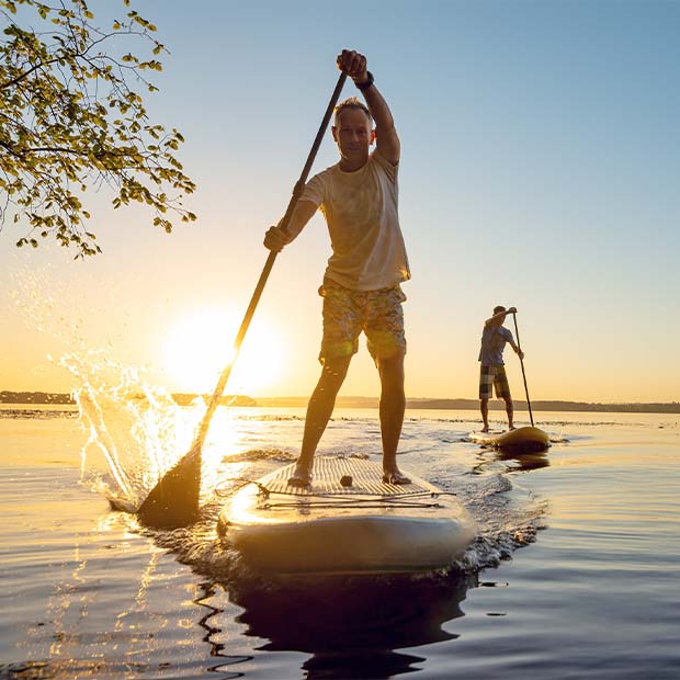 Gerade im Sommer sieht man mittlerweile auf Flüssen, Kanälen und Seen überall Menschen auf ihren Boards paddeln. Und in der Tat zählt Stand-up-Paddling (SUP) zu den urbanen Trendsportarten. Ob auf einem See oder im Fluss quer durch die Stadt, SUP macht Spaß und ist zudem ein effektives Training, das die gesamte Rumpf- und Beinmuskulatur fordert und stärkt. Und da wir die Natur lieben und respektieren, achten wir natürlich darauf, mit