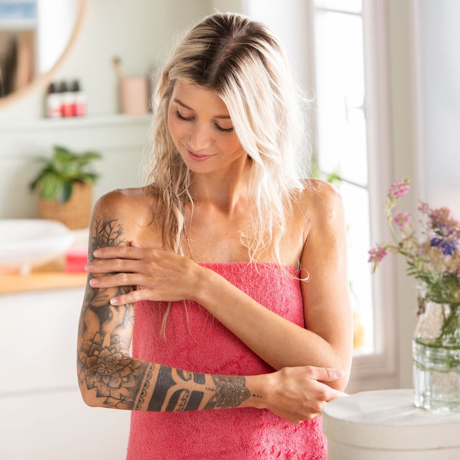 Nachdem der körpereigene Wundheilungsprozess abgeschlossen ist und die Narbe verschlossen ist, kann das Haut Stärkungs Öl bio zur Narbenpflege verwendet werden. Massiere dafür das Öl 1-2 mal täglich mit sanftem Druck in die Haut rund herum um die Narbe ein.