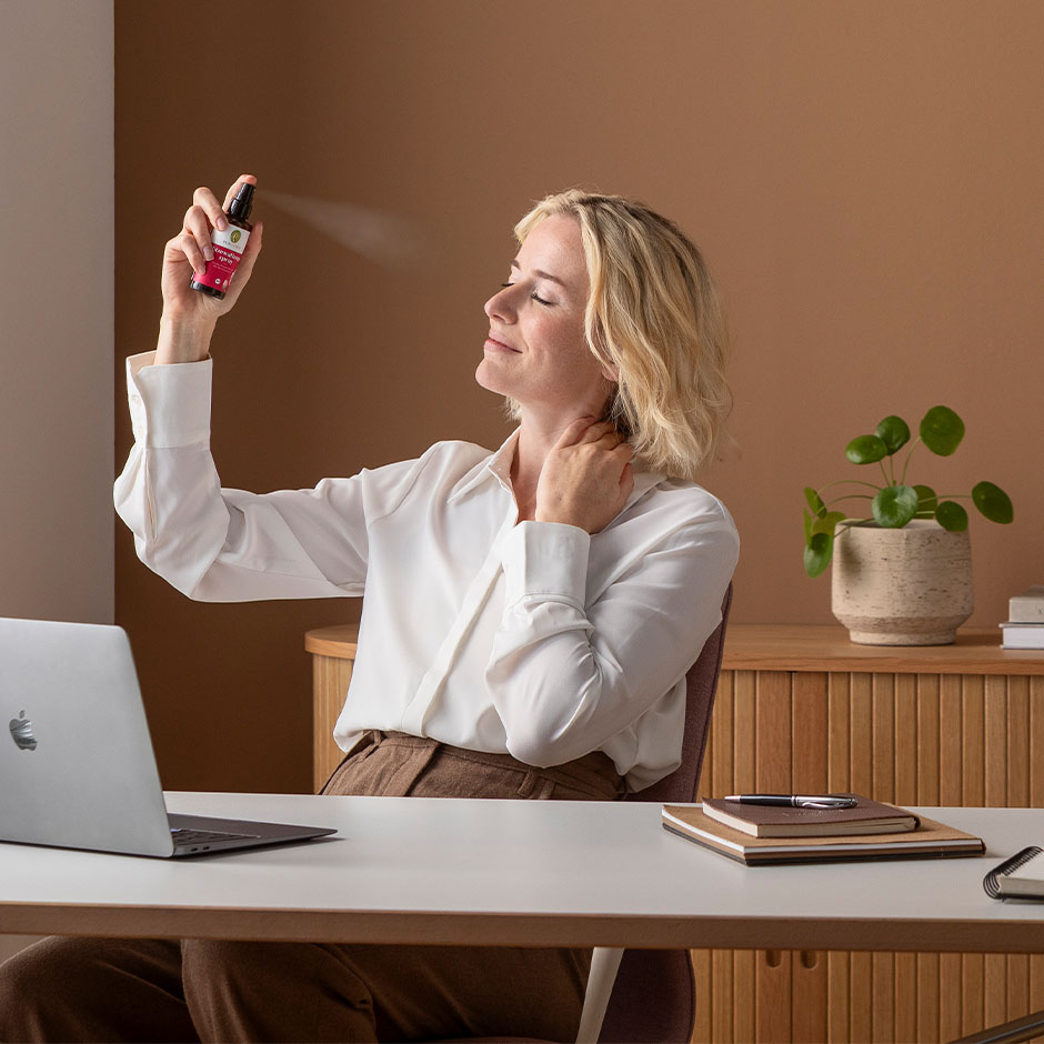 Bei ersten Anzeichen einer Hitzewallung auf Gesicht und Dekolleté aufsprühen und bewusst den ausgleichenden Duft genießen.