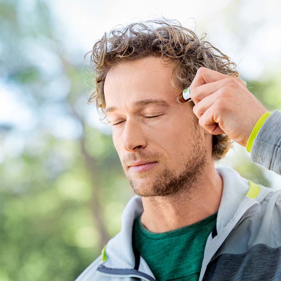 Auf die Haut am Handgelenk, Nacken oder der Schläfen auftragen.