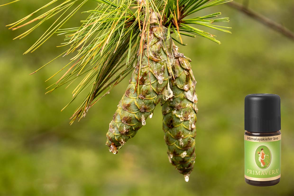 Die Himalayakiefer prägt die wilde Landschaft des Himalayas. Sie kann bis zu 50 Meter hoch werden. Ihre Nadeln sind weich und lang, die Zapfen bringen Harztropfen hervor. Sie wird daher auch als „Tränenkiefer“ bezeichnet. Das ätherische Öl wird aus den Zweigen des Baumes durch klassische Wasserdampfdestillation gewonnen.