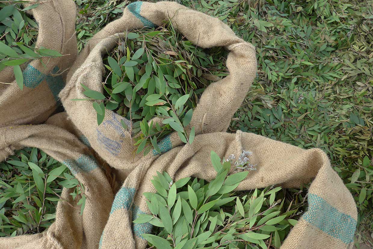 Das krautig duftende Pflanzenmaterial wird in Säcken gesammelt und zügig destilliert.