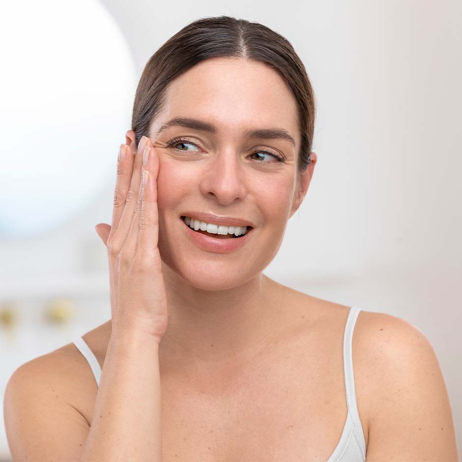 Das Öl zwischen den Handflächen anwärmen und mit kleinen kreisenden Bewegungen in die tonisierte Gesichtshaut einmassieren.