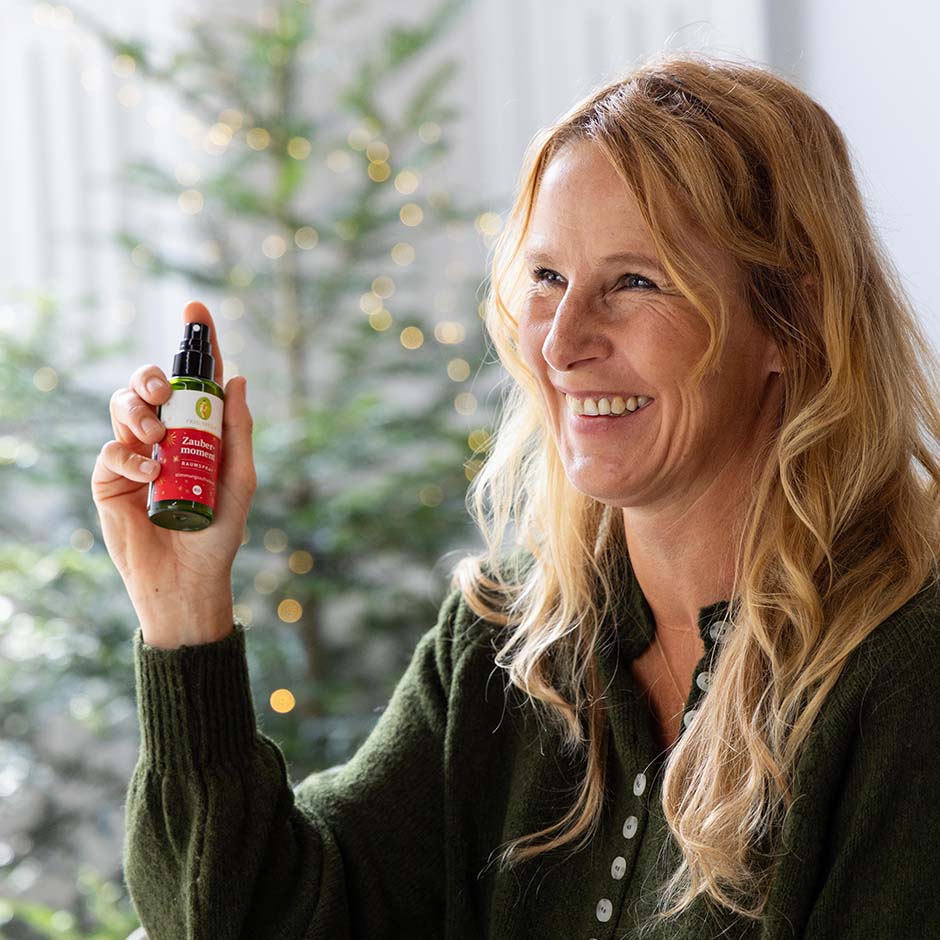 Das Raumspray bietet uns eine schnelle und praktische Möglichkeit, unsere Wohn- und Arbeitsräume in eine weihnachtliche Atmosphäre zu verwandeln. Sprühe den Duft einfach mit einigen Pumpstößen direkt in den Raum und genieße die wohltuende Wirkung der naturreinen ätherischen Ölen.